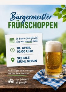 18.04.2026 Schule Mühl Rosin: 10:00 Bürgermeister Frühschoppen
